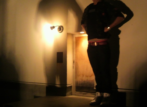 むき出しのコンクリ造りの四角い建物に、ぽつんと付いてる小さな入り口。