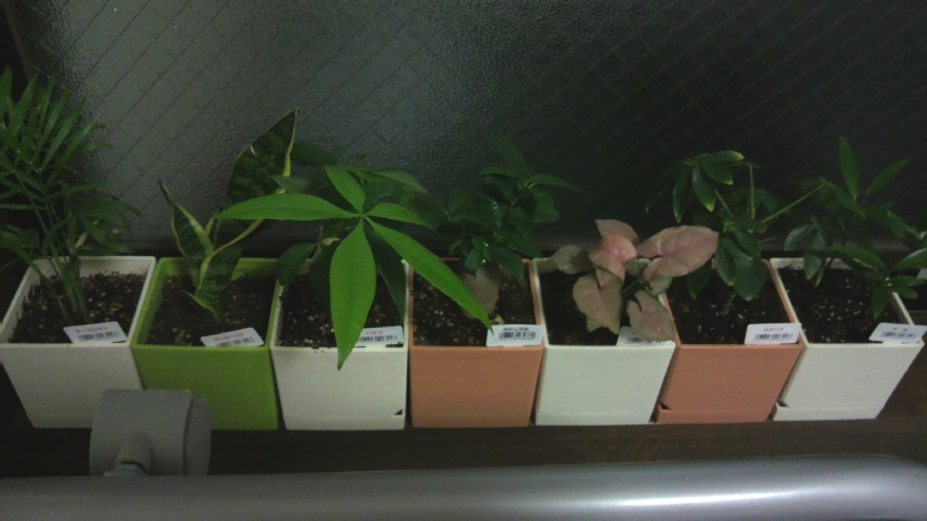 一番左のテーブルヤシが購入時よりも成長してるなぁ、とか一人ほくそ笑んでたり。