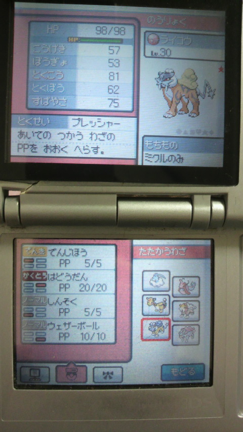てっきり通信か何かで受け取ると思ってたんですが、DSについてるアドバンス用カートリッジに、「エンテイ」「ライコウ」「スイクン」用のソフト挿しこんで受け取るんですね。