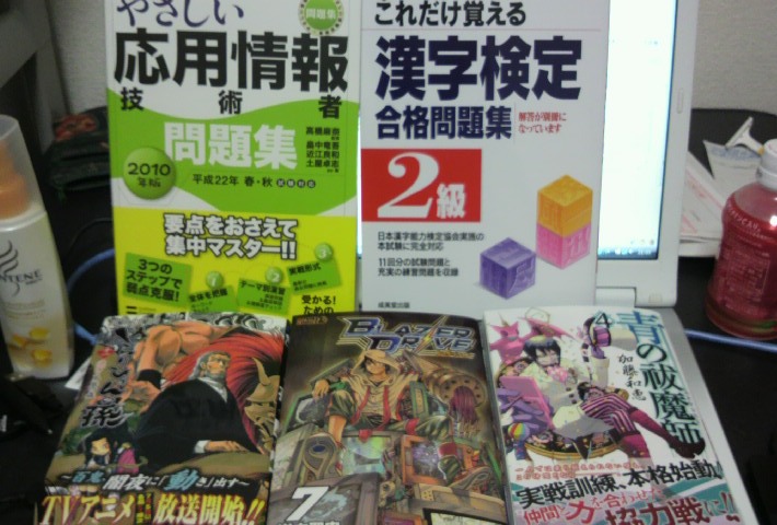 漫画じゃない方の本は見ての通り、応用情報と漢検の本です。