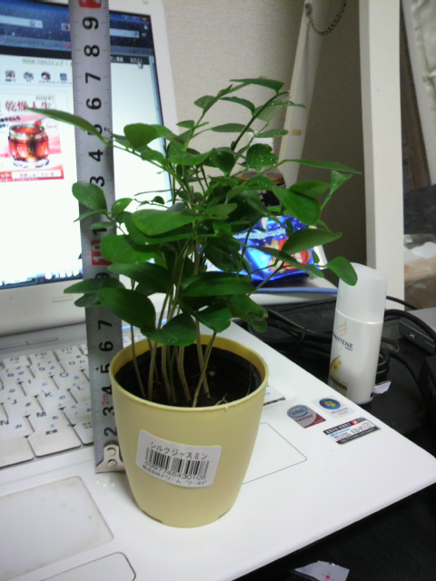 何となく花が咲きそうな名前だったので嫌煙してた(=葉っぱ好き)んですが、調べてみたらコイツ茉莉(ジャスミン)じゃなくて柑橘なんですね。蜜柑蜜柑。単に花が似てるってだけで、正式名称は月橘。生薬だかそんな感じのだそうです。